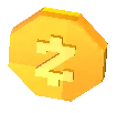 Zoo Coins are in the shape of an octagon. They are a light gold in colour, with a slightly lighter raised "Z" symbol in their center. The "Z" has a line running vertically through the top and bottom, invoking that of a dollar sign ($).